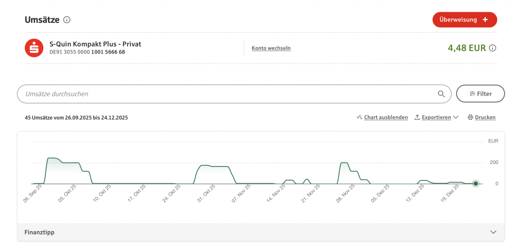 Mein Kontostand vom 24. Dezember 2025: