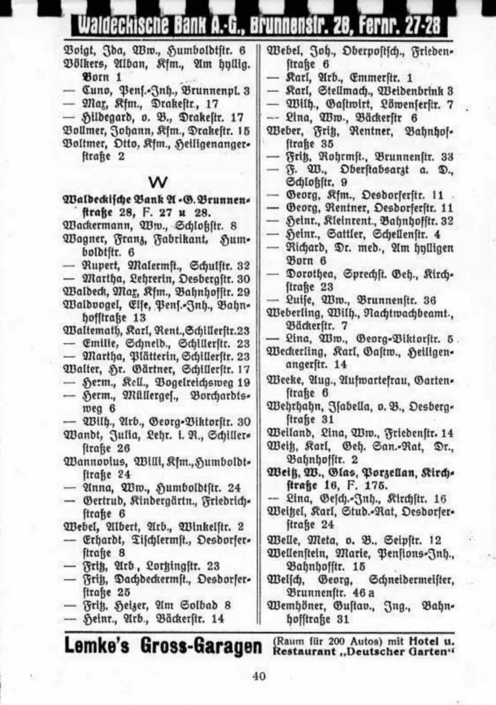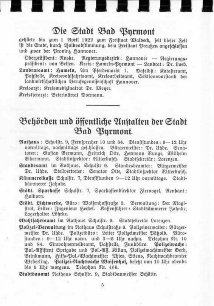 Aus dem Einwohner-Adressbuch von Bad Pyrmont von 1927