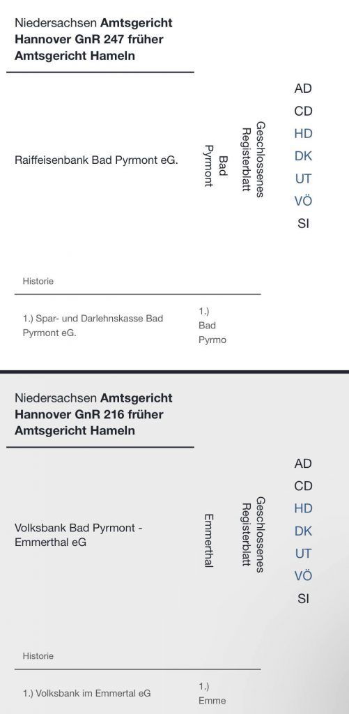Historie: 1.) Spar- und Darlehnskasse Bad Pyrmont eG.