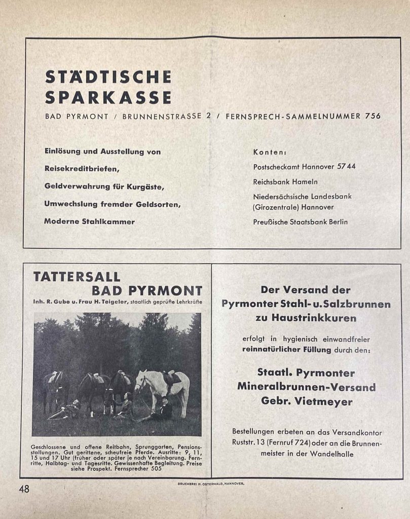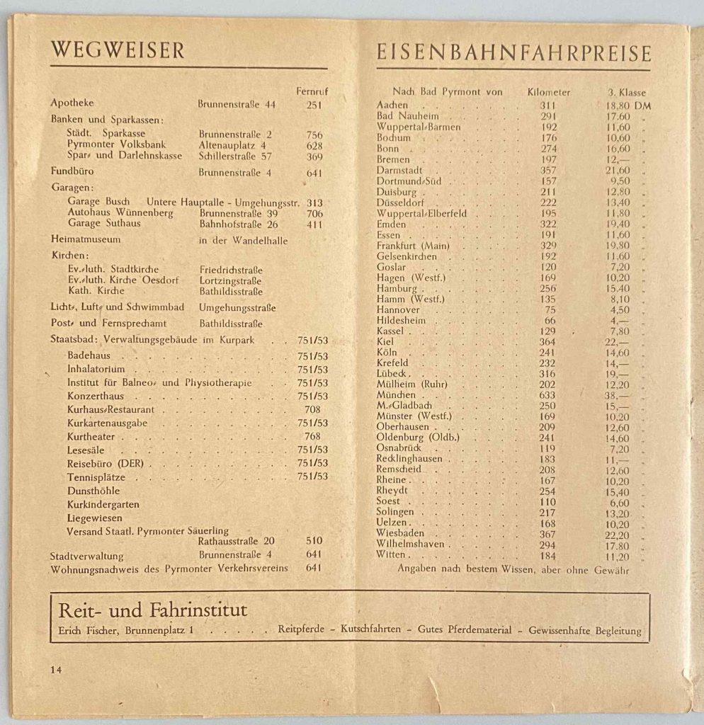 Aus einem Prospekt über das Staatsbad Pyrmont von 1949