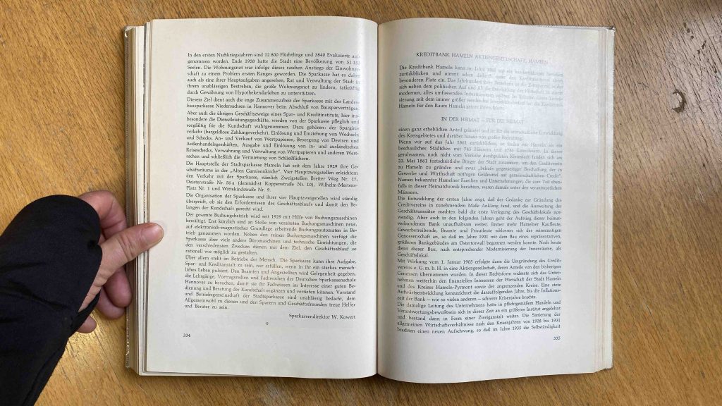 Auszug aus dem Buch „Heimatchronik Hameln / Hameln – Bad Pyrmont“ von 1961